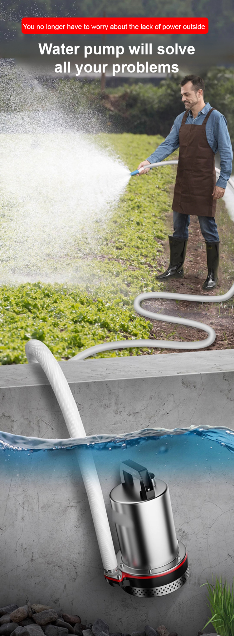 PowerFlow™ DC Submersible Pump - 30x Stronger Pressure for High-Performance Water Transfer